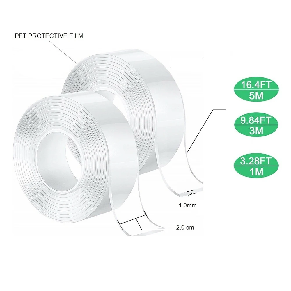 Двусторонняя нано-лента, 1 м, 3 м, 5 м, прозрачная, многоразовая, в...