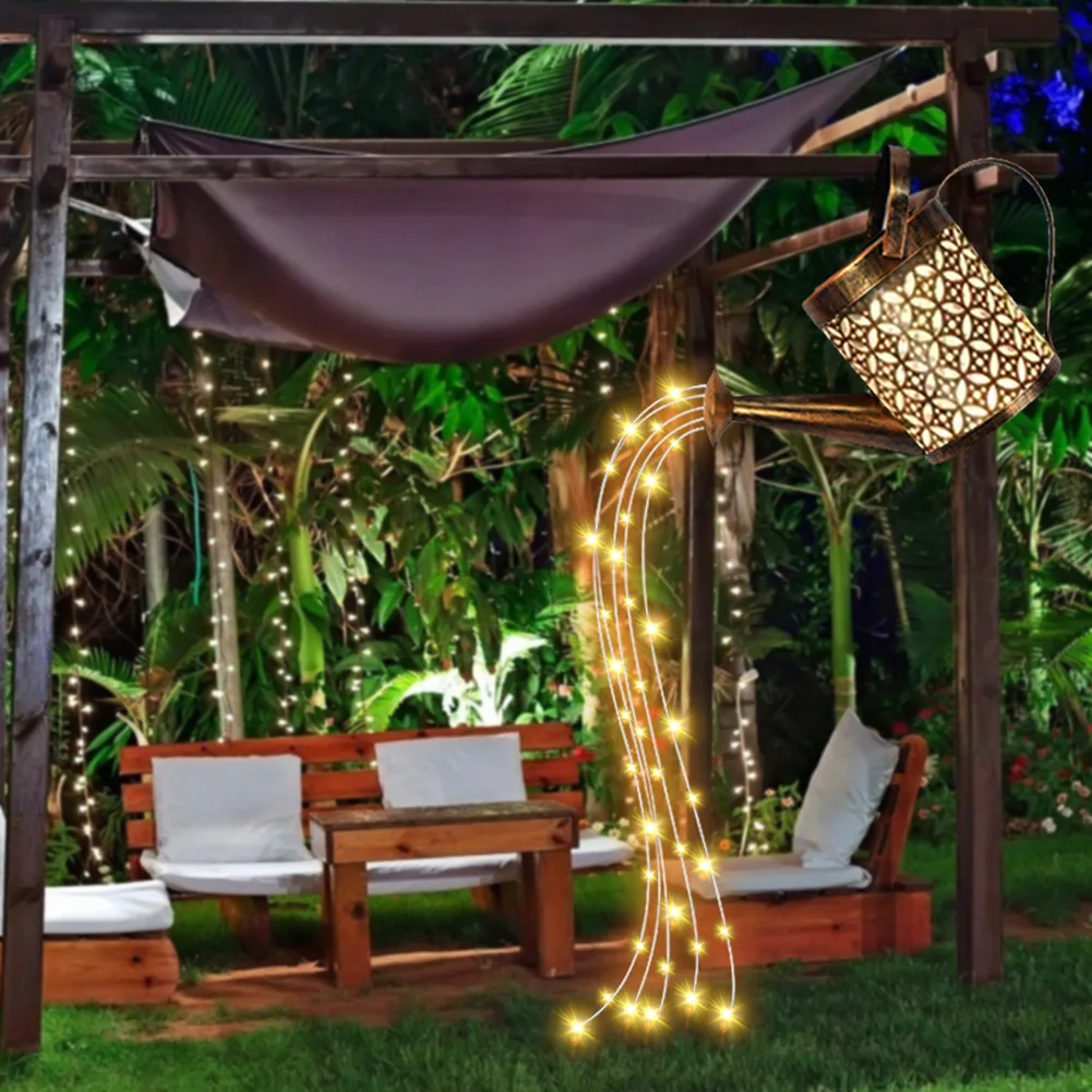 Кованая Железная ажурсветильник лампа, металлическая поливочная банка на солнечных батареях, сказочный светодиодный светильник для улицы, освещение для сада