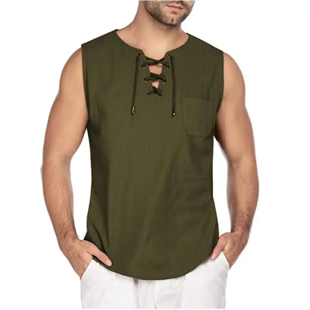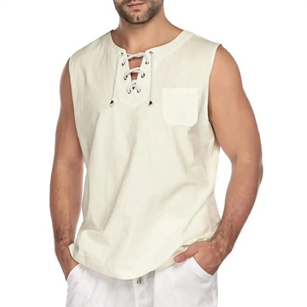 Мужская майка, Повседневная однотонная Летняя мужская Толстовка без рукавов, с V-образным вырезом, свободный крой, майка