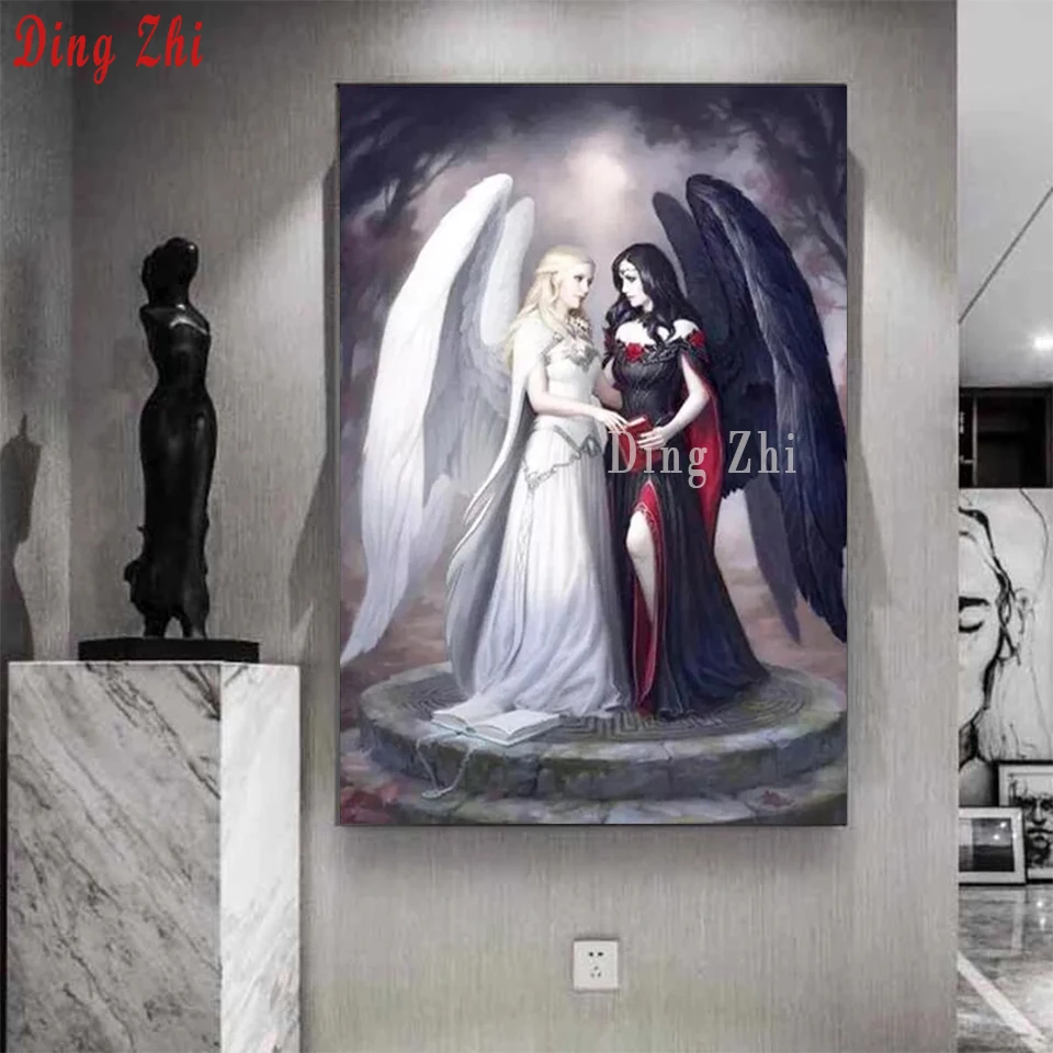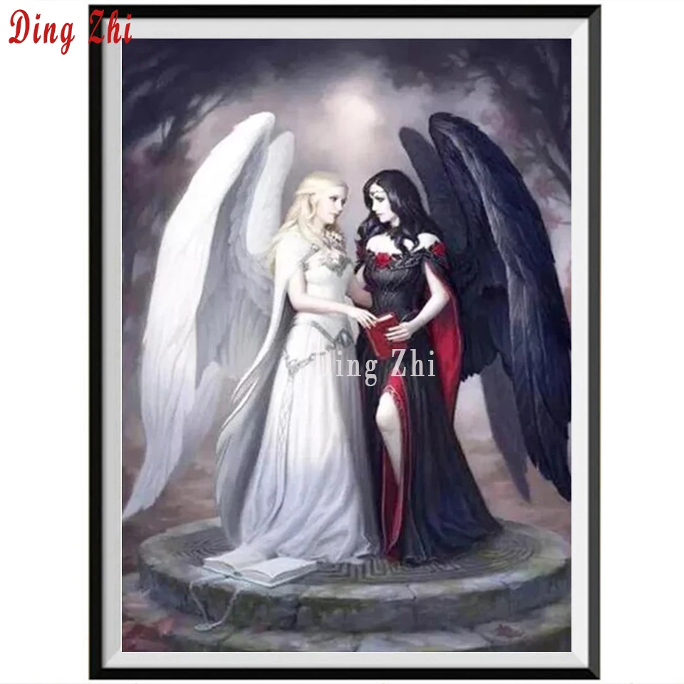 DIY 5D алмазная картина полностью квадратная/круглая черно-белая Ангел вышивка крестиком ручная работа 5d Вышивка стразы украшение