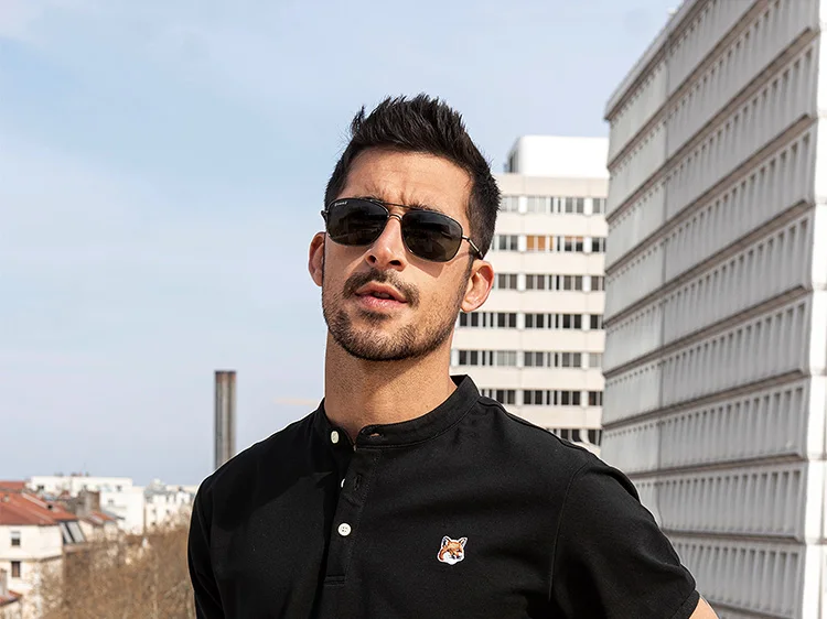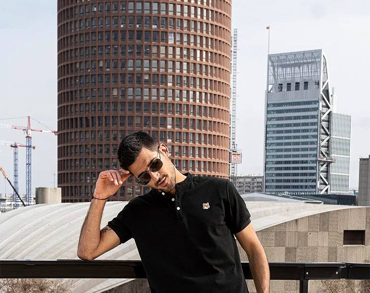 Мужская Однотонная рубашка-поло KUEGOU, черная приталенная рубашка-...