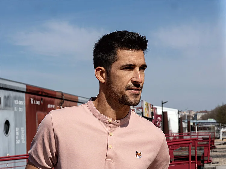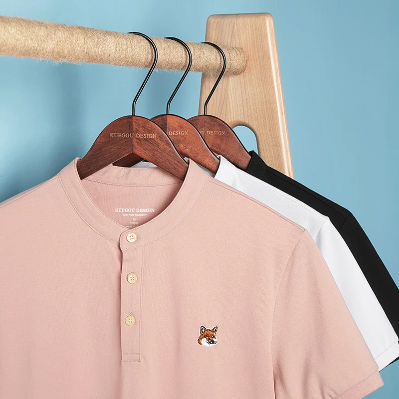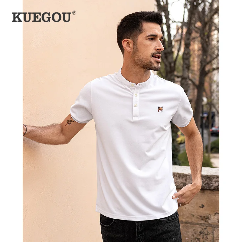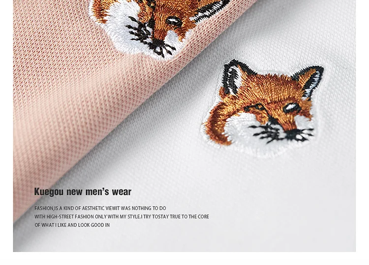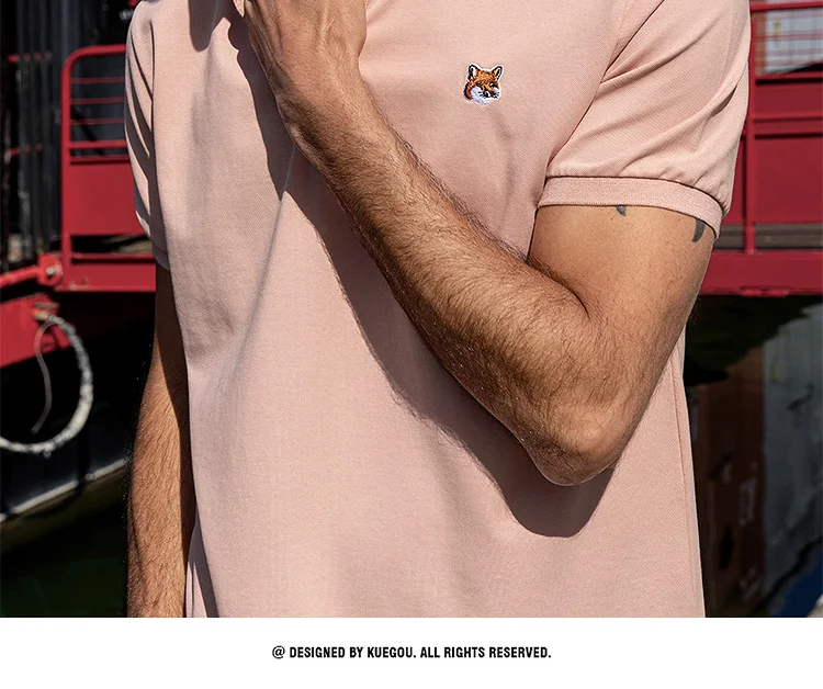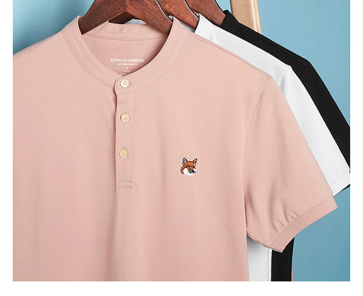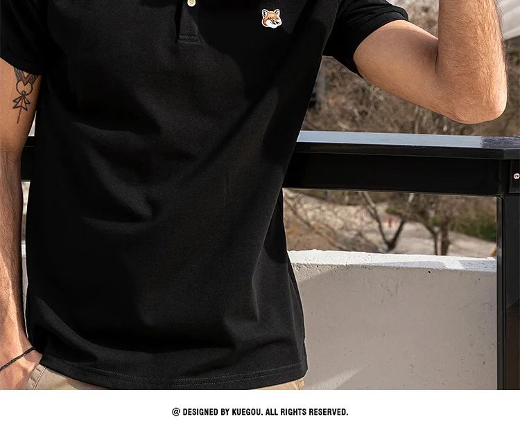 KUEGOU мужская футболка поло рубашки для мальчиков рубашка с короткими рукавами и вышитым Лисом из футболки-поло летние со стоячим воротником Высокое качество однотонный топ размера плюс 90017