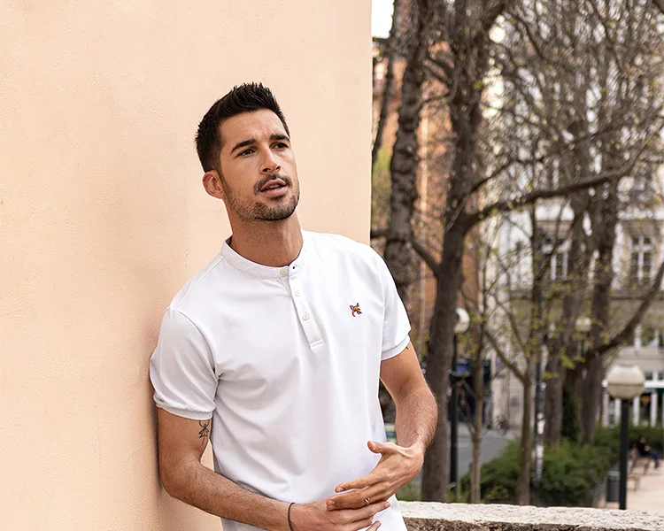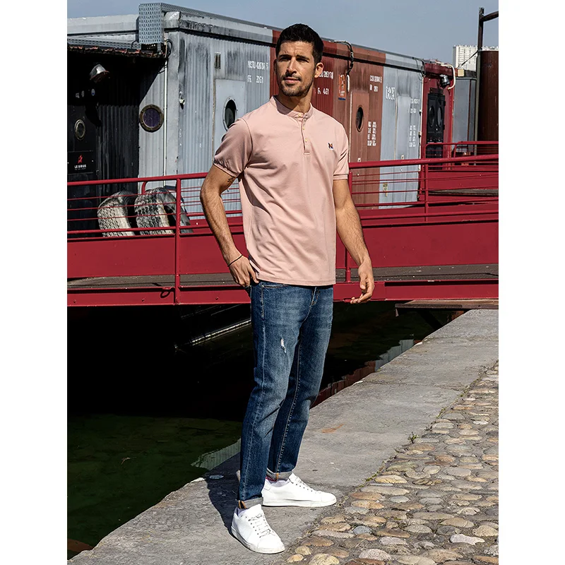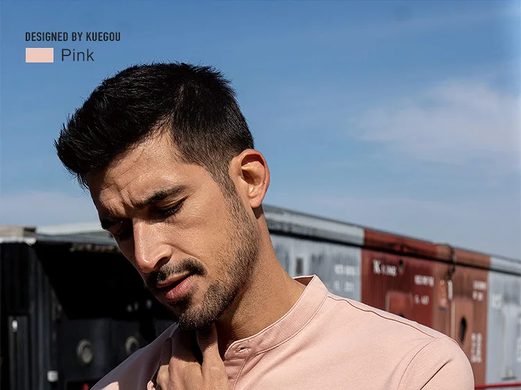 Мужская хлопковая рубашка-поло KUEGOU, летняя приталенная рубашка-п...