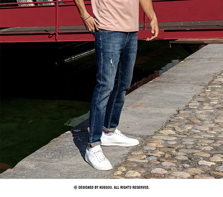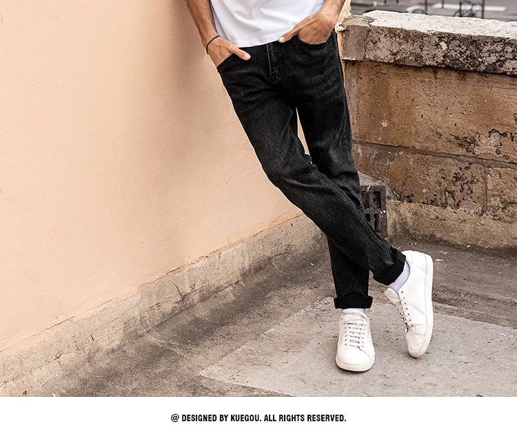 KUEGOU хлопчатобумажная одежда мужские рубашки стильное джинсовое п...