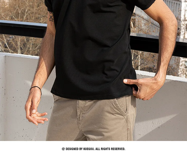 Мужская футболка с коротким рукавом KUEGOU, однотонная Базовая футб...