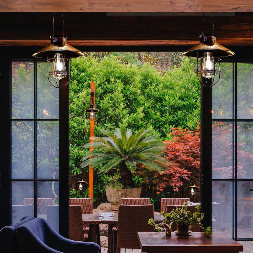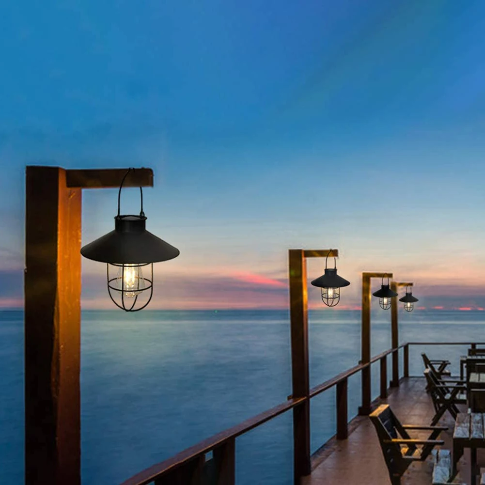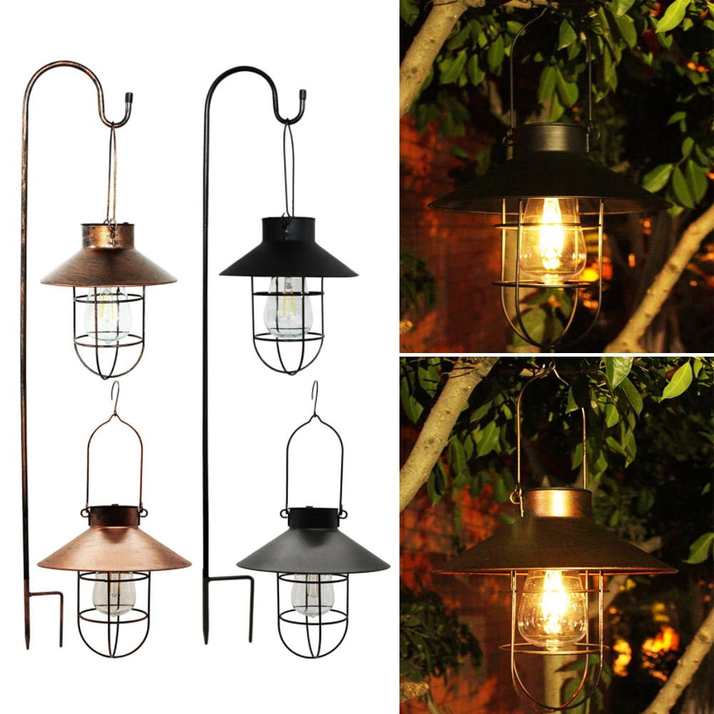Для дома и улицы Солнечный Фонари, 1 упаковка Ретро металлический Солнечный Фонари светильник с теплым белым Водонепроницаемый Эдисон лампы солнечного света светодиодный светильник s