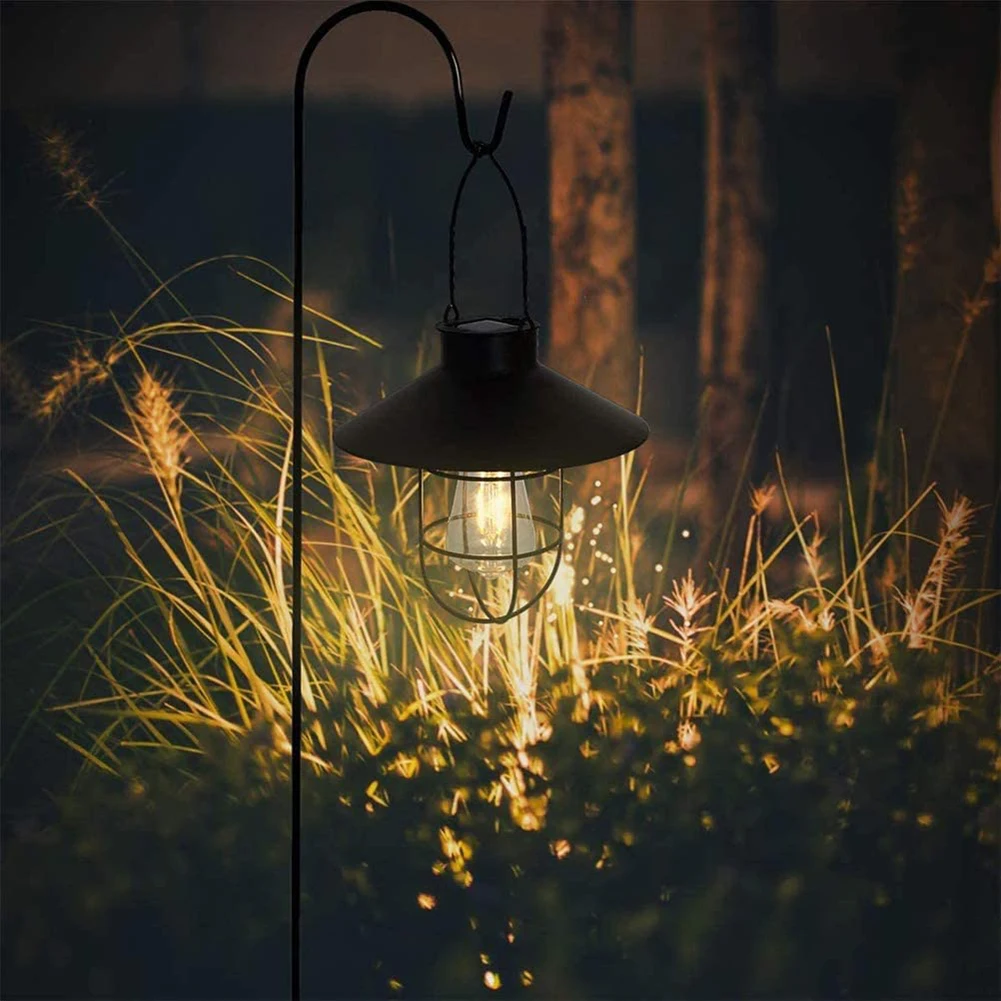 Напольный подвесной Солнечный фонарь, 1 упаковка Ретро металлический солнечный светильник-фонарь с теплой белой водонепроницаемой лампочкой Эдисона, Солнечный СВЕТОДИОДНЫЙ светильник для прогулок, сада, патио, двора, крыльца, двора декора