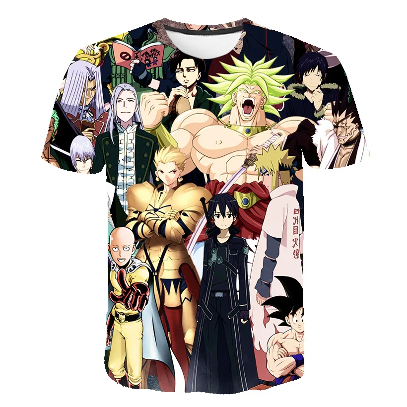 2021 летние детские футболки с персонажами из аниме, с коротким рук...