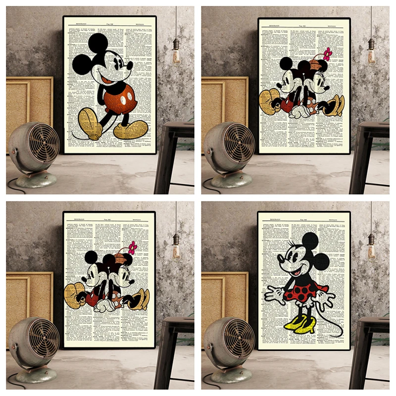 Disney мультфильм холст Микки Минни Маус плакаты и принты Ретро Кар...