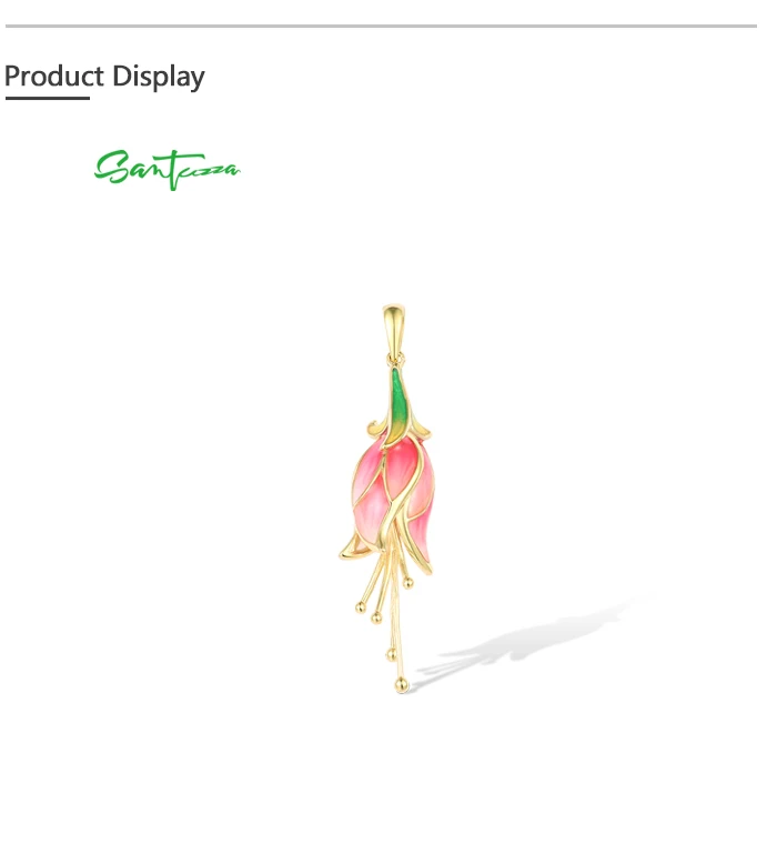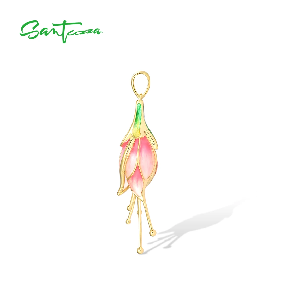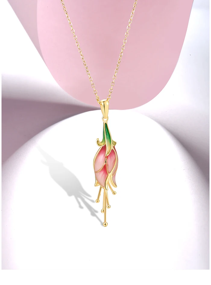 Rainmarch чистый 925 стерлингового серебра кулон для женщин Элегантный Золотой Цвет Тюльпан Цветок модный Шикарный ювелирные украшения ручной работы эмаль