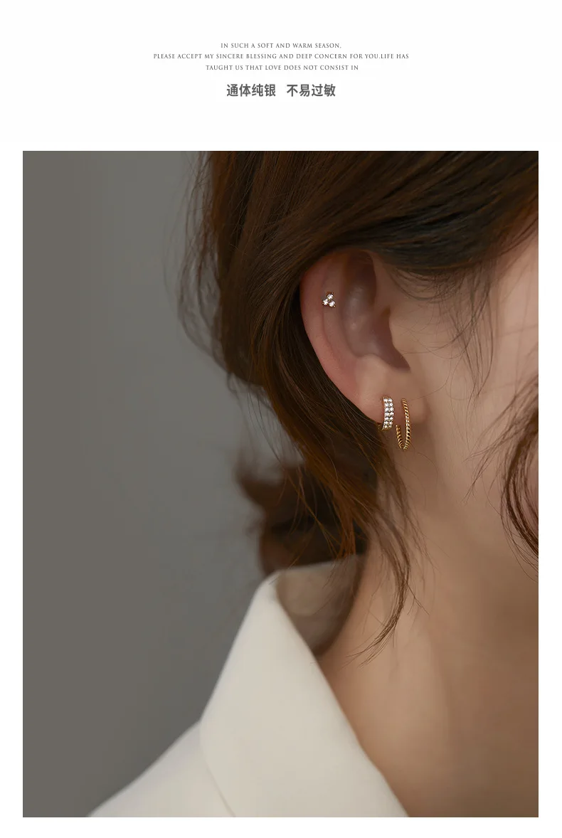 Серьги-гвоздики серебристого цвета с цирконом в виде клевера