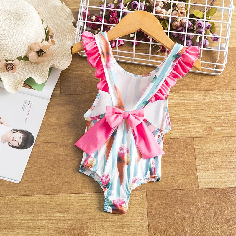 Цельный купальник для девочек от 0 до 4 лет, милый слитный купальни...