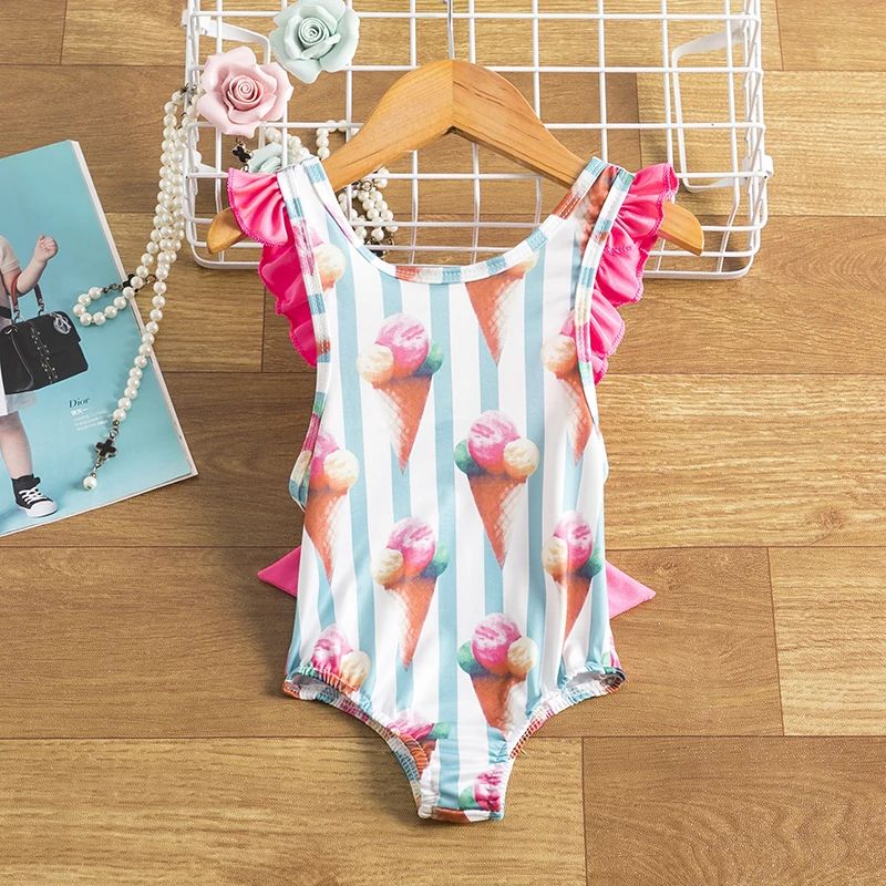 Купальник для девочек, цельный, монокини с принтом и оборками, для ...