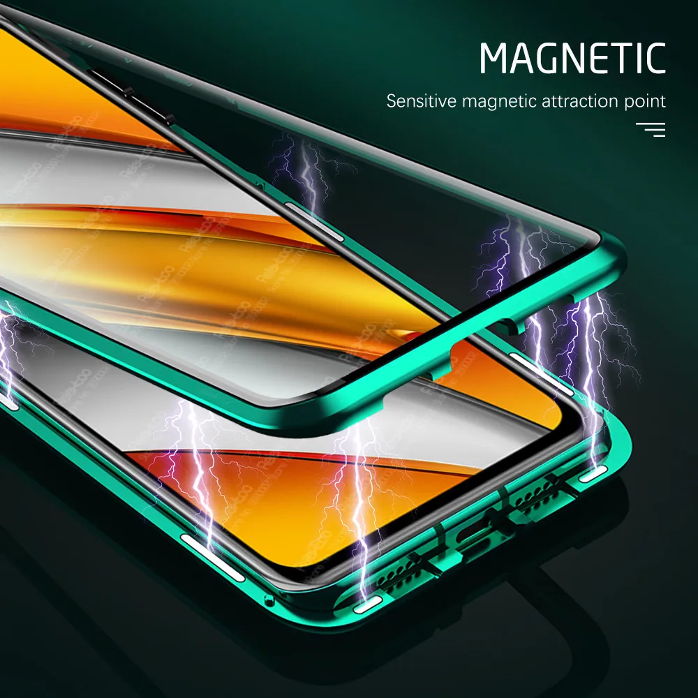 Чехол с магнитной адсорбцией на 360 ° для Xiaomi Poco F3 X3 Pro PocoPhone F X 3 NFC PocoF3 PocoX3 двусторонний чехол из закаленного стекла