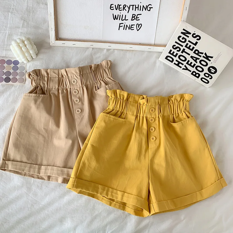 Шорты женские хлопковые с высокой талией, свободные, в Корейском ст...