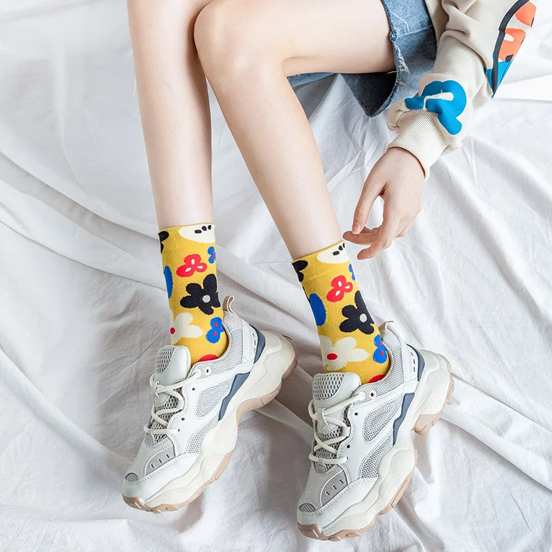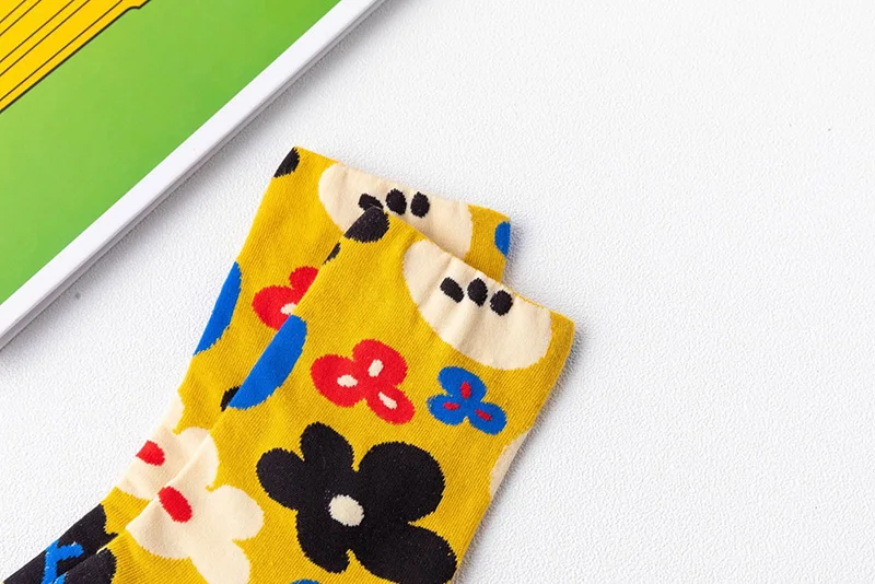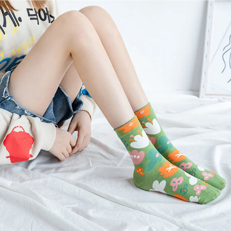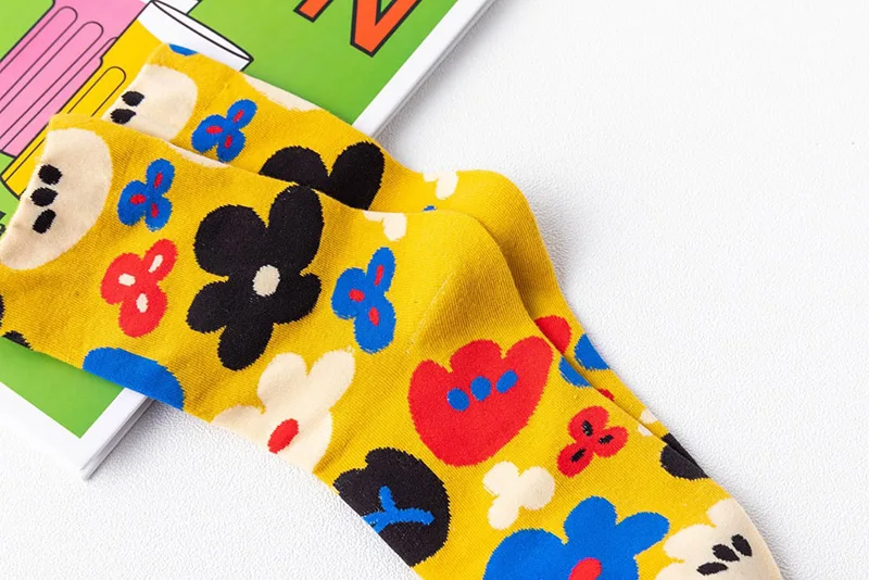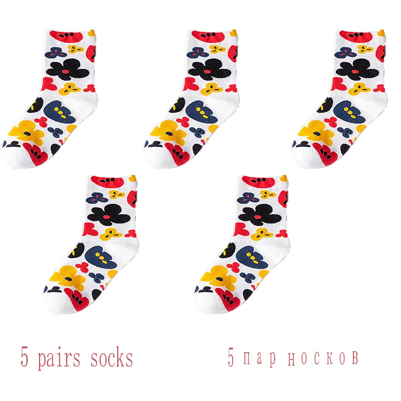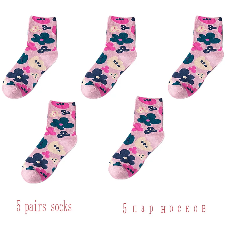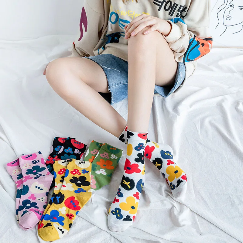 5 пар в партии, Забавный; С цветочным принтом; Хлопковые женские нескользящих носочков, высокое качество, на каждый день, в стиле Харадзюку для девочек Симпатичные носки для женщин, подарки набор