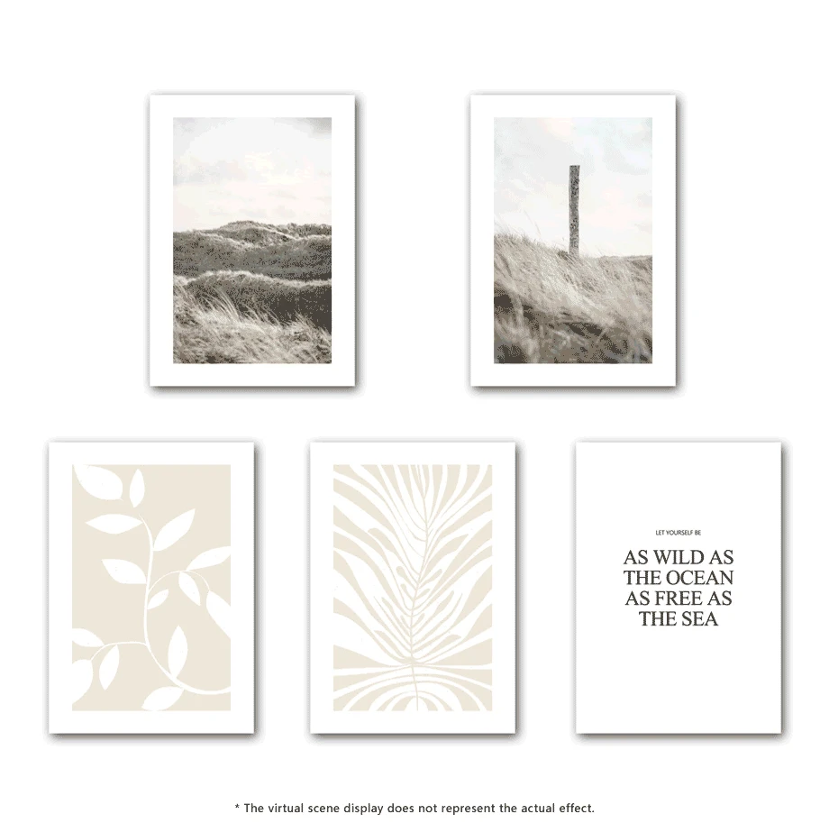 Настенная картина со сдержанными волнами, пляжной травой, тростнице...