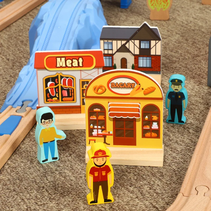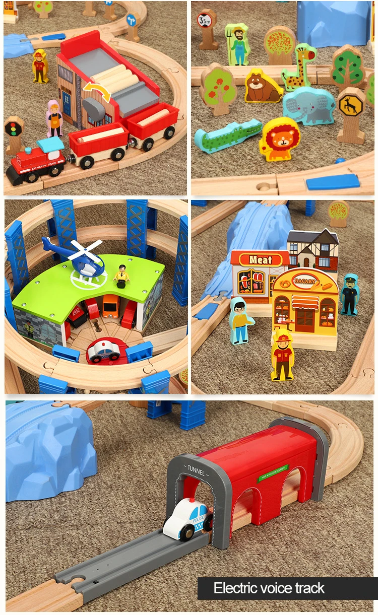 102 шт. маленький поезд, деревянный трек, циркулярный Пирс, зеленый гараж, грузовой самолет, совместимый с игрушками поезда