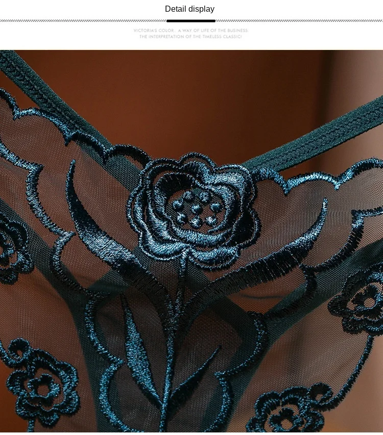 Сексуальные кружевные вышитые женские трусики, T-образные прозрачны...