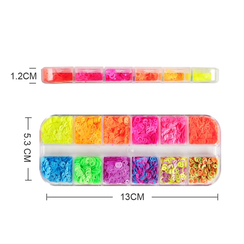 12 ячеек флуоресцентные полые круглые Блестки неоновые круглые блестящие хлопья 3D DIY Красочные Ломтики для украшения ногтей
