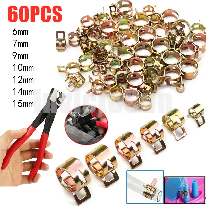 Пружинные зажимы для автомобиля и грузовика, зажимы для шланга для топлива, масла, воды, трубы, зажимы для охлаждающих систем, аксессуары и плоскогубцы, 60 шт., 6-15 мм