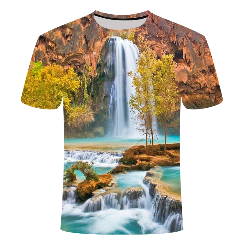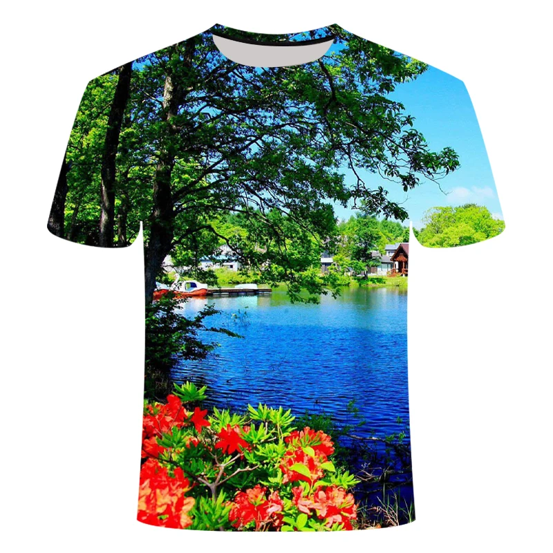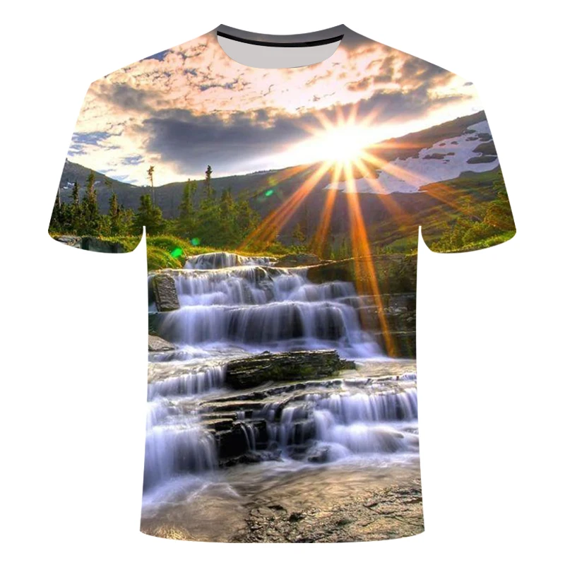 Мужская футболка с 3D-принтом, летняя футболка с изображением природного пейзажа и деревьев, футболка классная