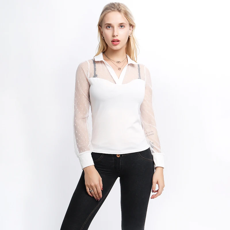 Новинка; Элегантные модные женские туфли из органической кожи Повседневная рубашка блузка Perspective прозрачное Сетчатое платье-фонарь с длинным рукавом в горошек Топы пляж Blusas
