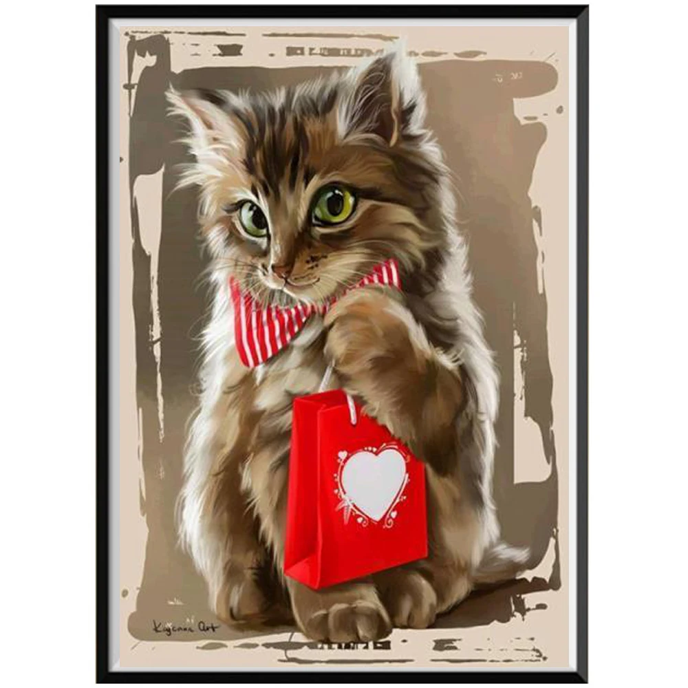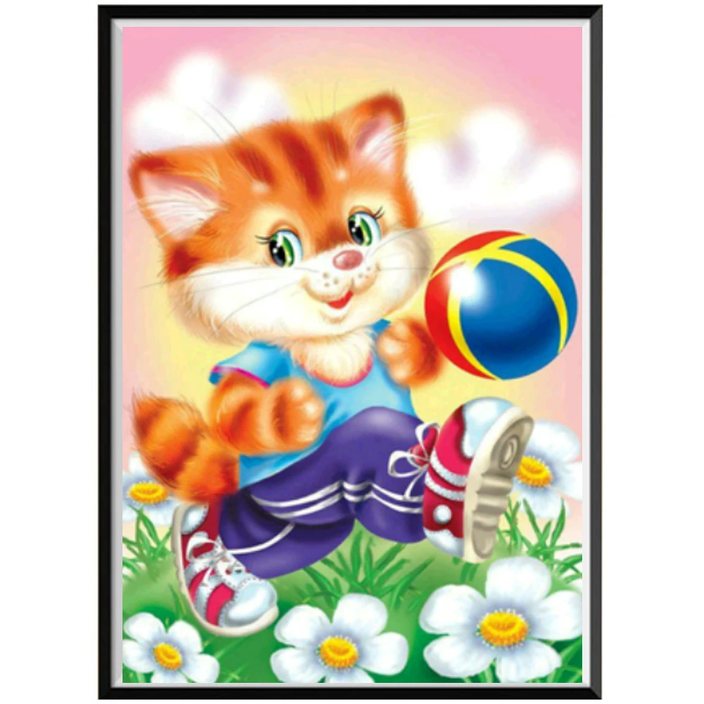 5D алмазная живопись, милый котенок, животное, кот, круглая Алмазна...