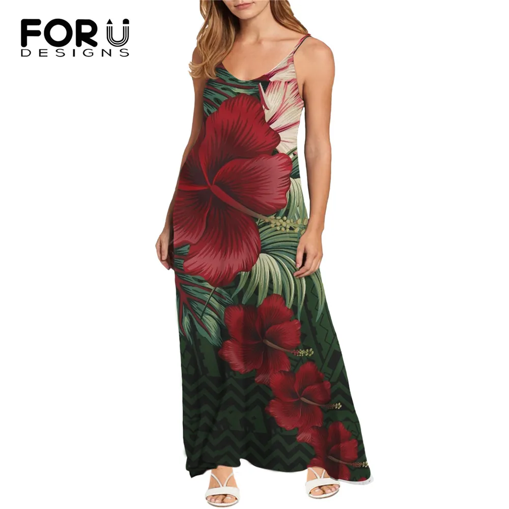 FORUDESIGNS винтажные платья для женщин, гавайский гибискус, узор, Дамское свободное платье на бретельках, сексуальное вечернее платье, женское платье
