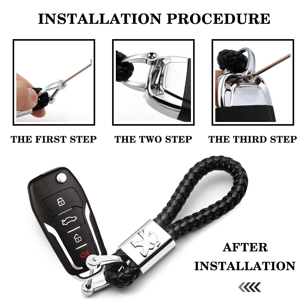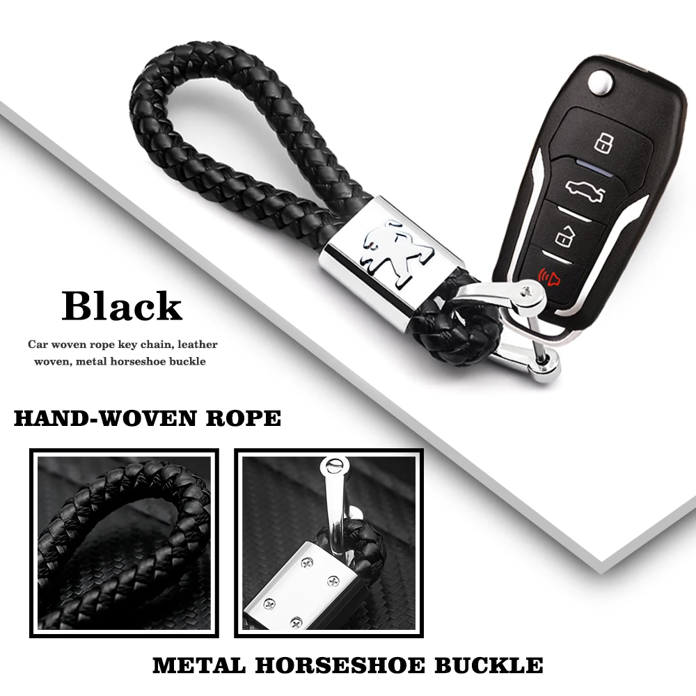 Кожаный Канатный брелок для автомобиля, Высококачественная ручная тканая Пряжка подковы, брелки для Peugeot 206 207 307 3008 2008 308 408 508 301 208Описание: