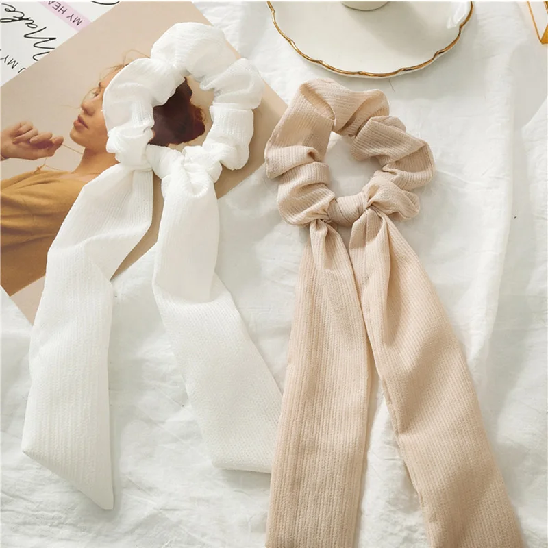 Резинки для волос, однотонные, с лентой для конского хвоста