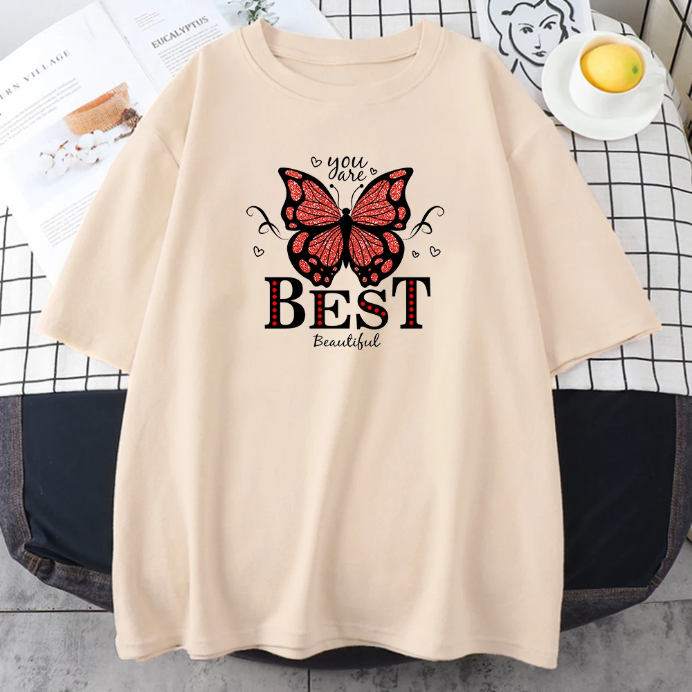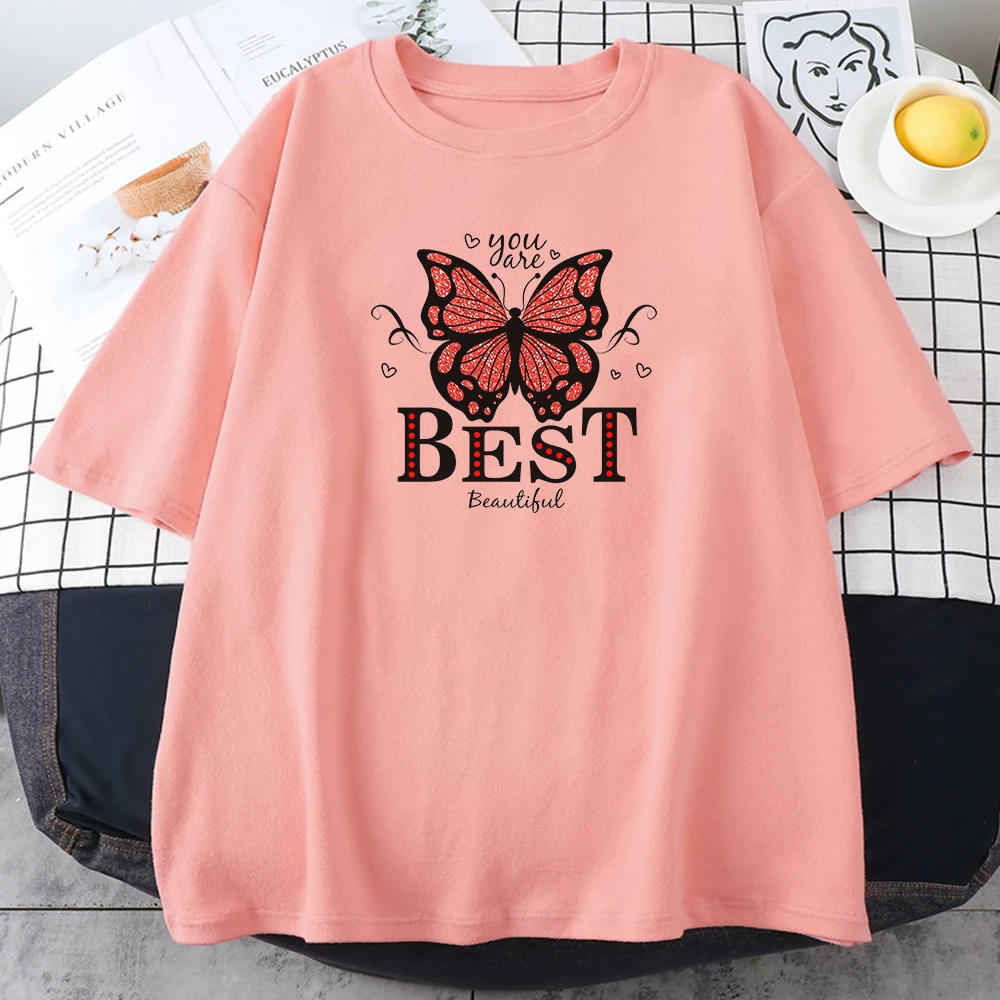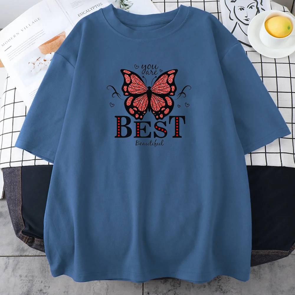 Женская футболка с принтом бабочек You Are The Best, женская футболка с креативным аниме рисунком, свободная одежда с круглым вырезом, женская футболка с круглым вырезом