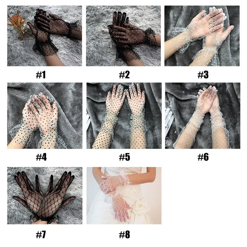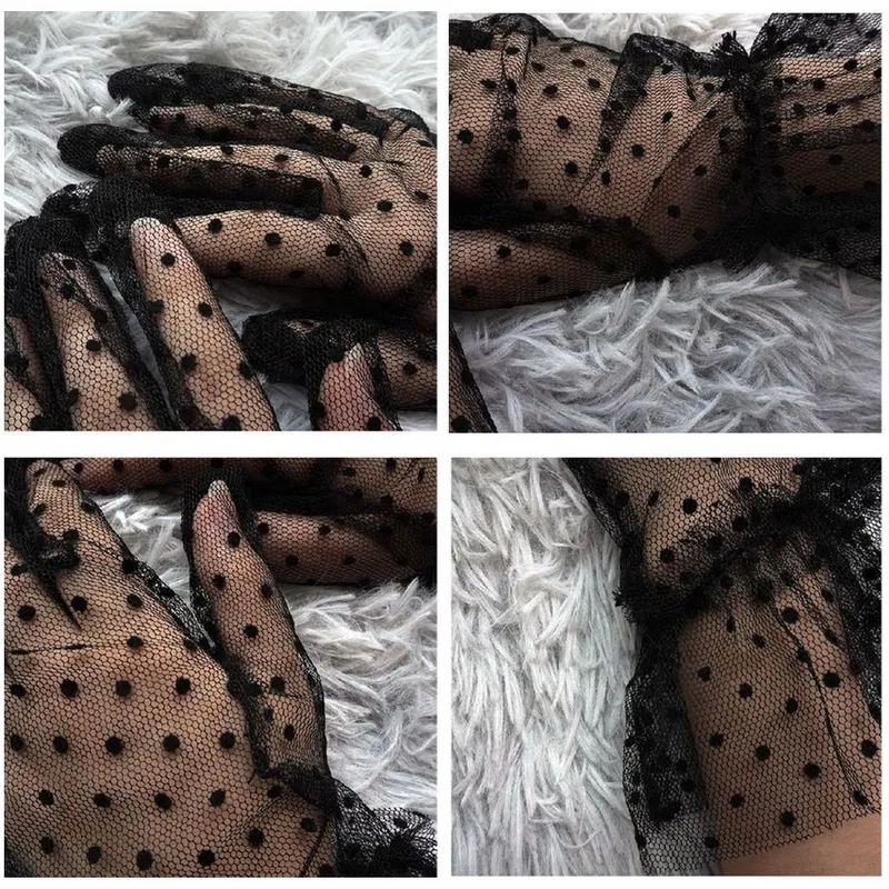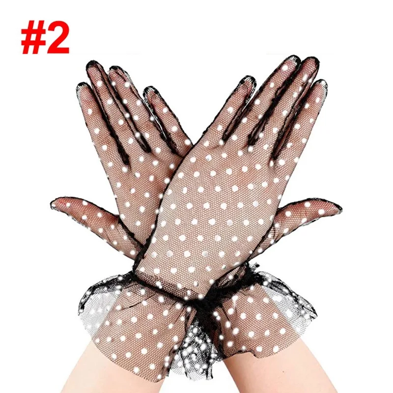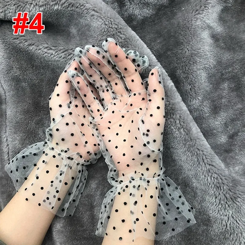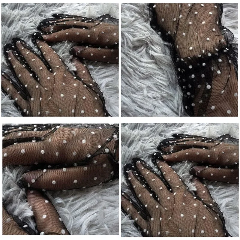 Новинка, 1 пара, летние женские тонкие короткие тюлевые перчатки, эластичные кружевные перчатки с пятнами, гибкие аксессуары, шелковые короткие перчатки с закрытыми пальцами