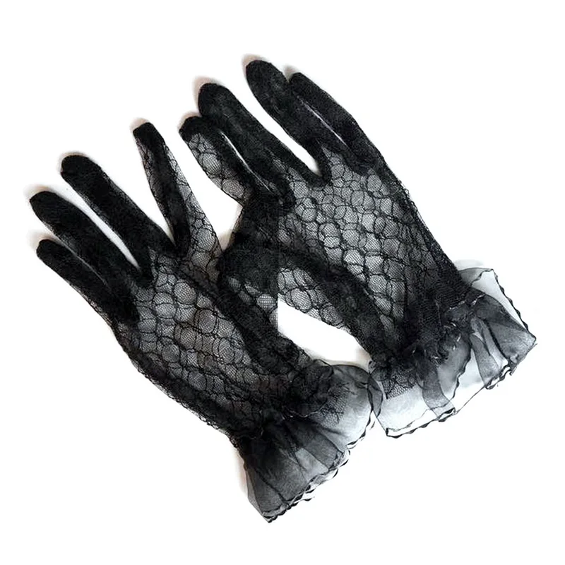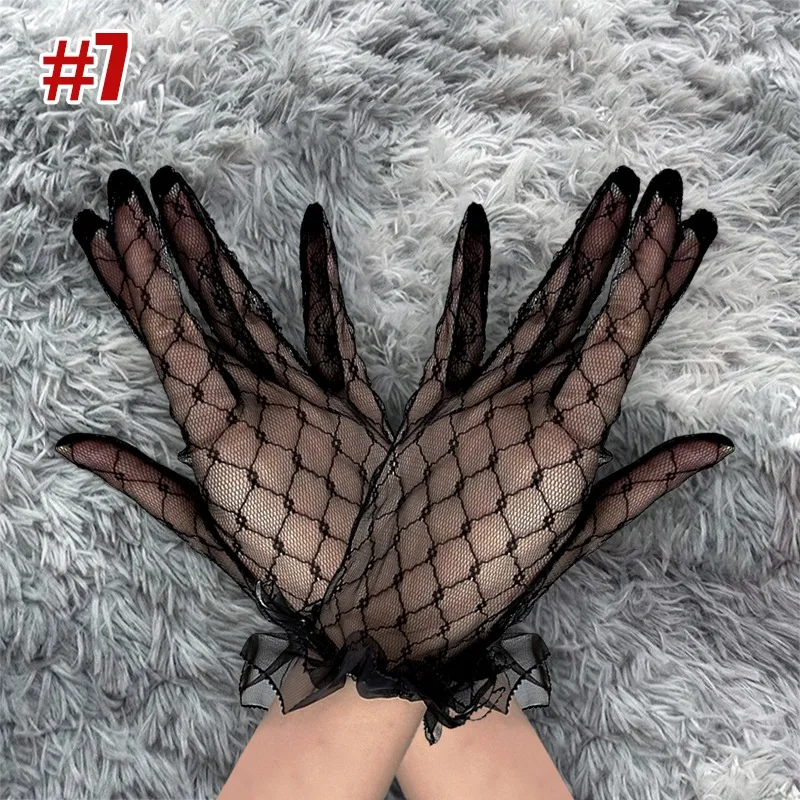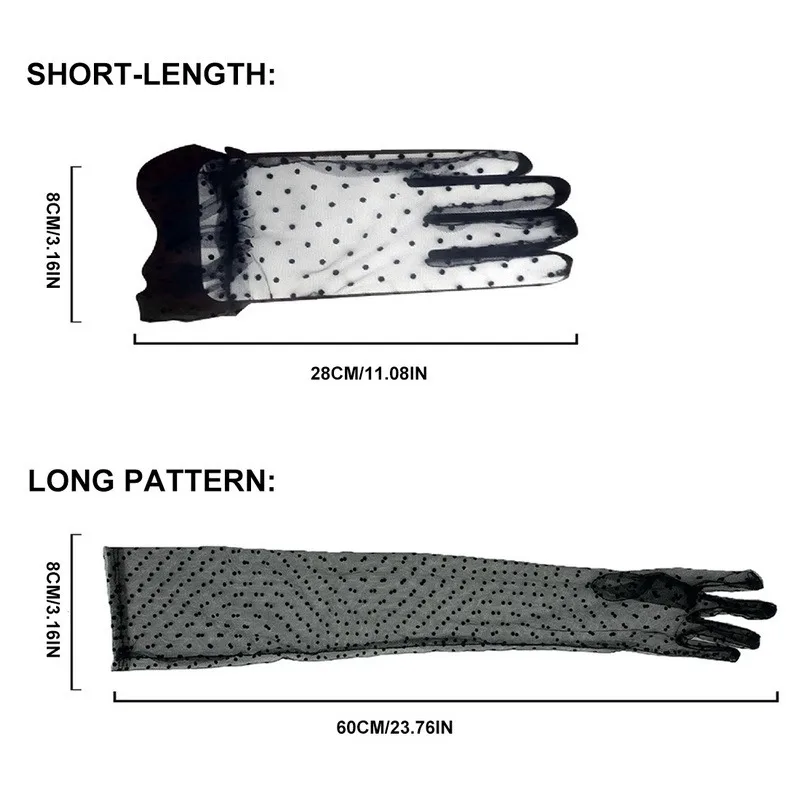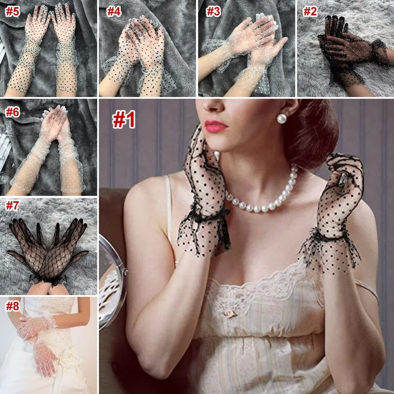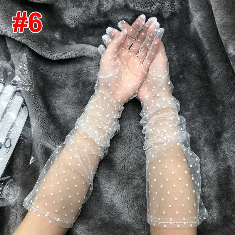 Новинка, 1 пара, летние женские тонкие короткие тюлевые перчатки, эластичные кружевные перчатки с пятнами, гибкие аксессуары, шелковые короткие перчатки с закрытыми пальцами