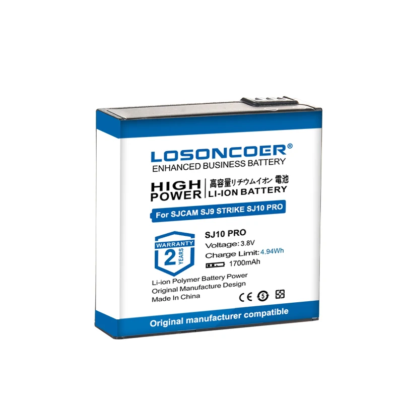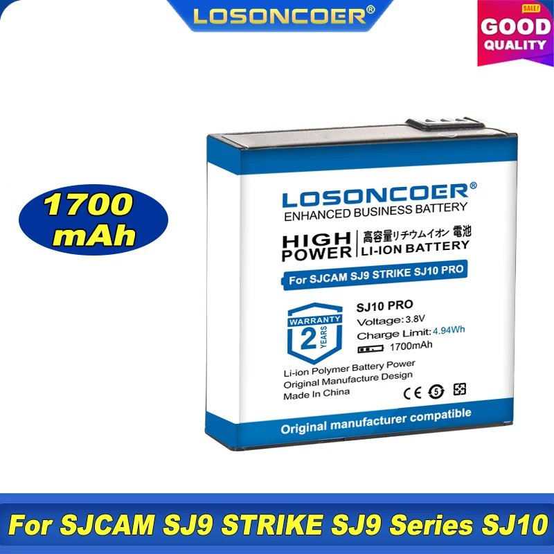 100% Оригинальный LOSONCOER 1700 мАч для SJCAM SJ9 STRIKE, серия SJ9 батарея, SJ9 MAX, SJ10 PRO, SJ10X 4K батарея для экшн-камеры