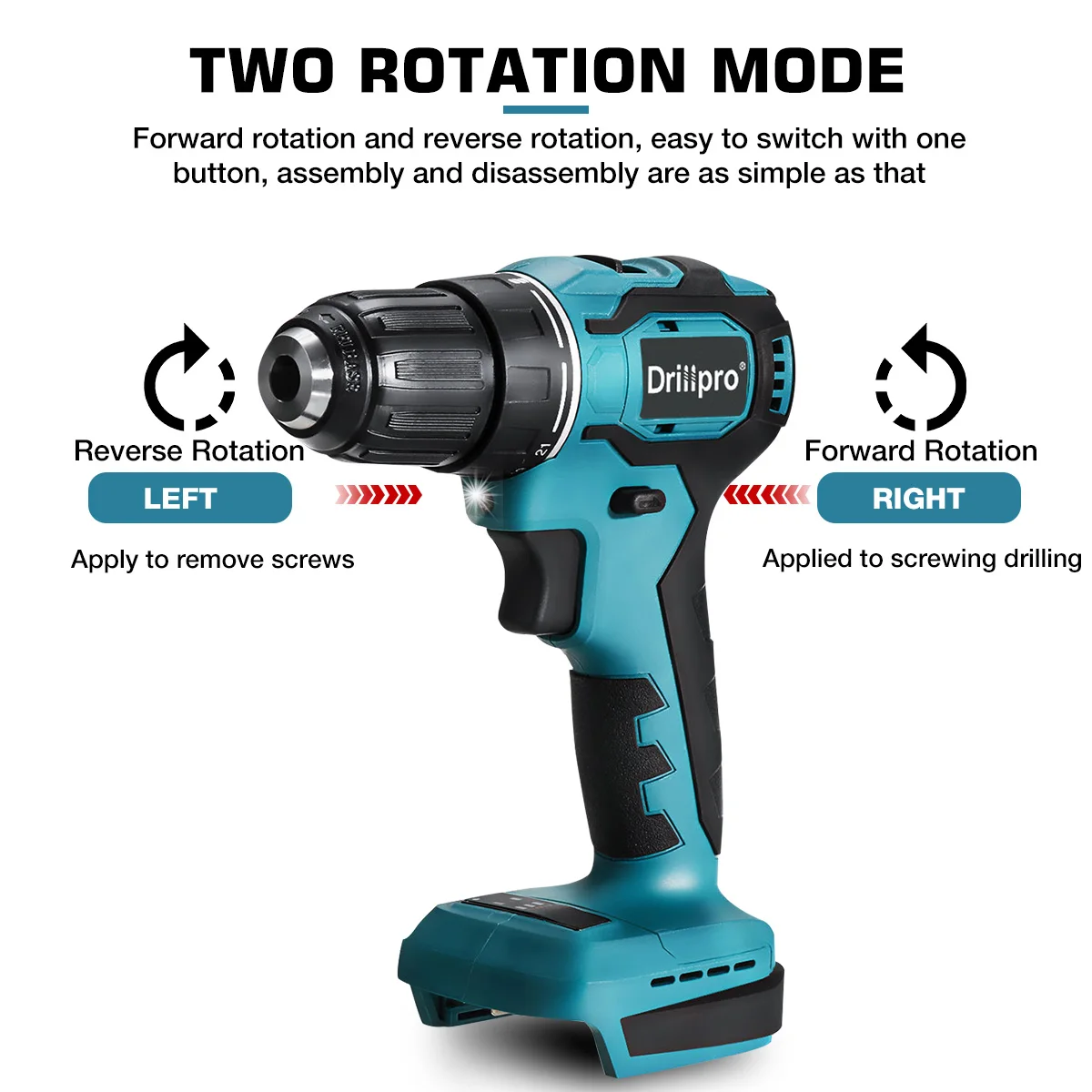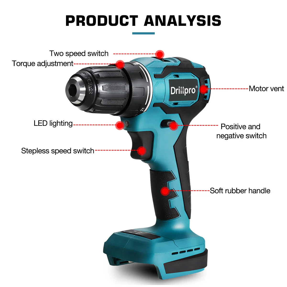 Электрическая аккумуляторная дрель Drillpro 18 в, 10 мм, электрическая отвертка, бесщеточный ударный пистолет, электроинструменты, совместимы с батареей Makita