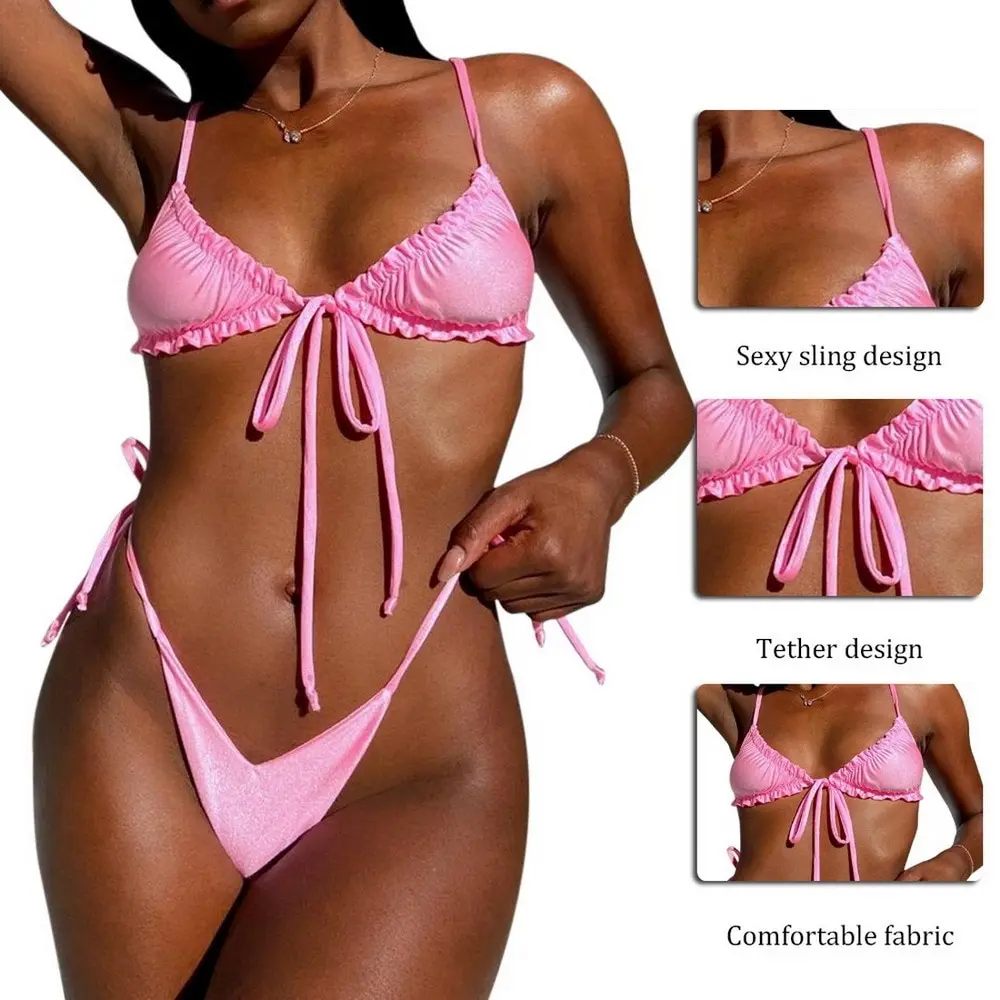 Соблазнительное микро-бикини 2021, женский купальник, бандажный комплект бикини, купальник, женский топ с лямкой на шее, Бразильский купальный костюм, бикини для выпечки