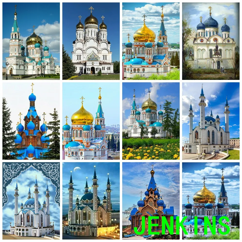 Алмазная вышивка с изображением пейзажа мечети, для российских зданий и церквей, Набор для творчества, ручная работа, подарок