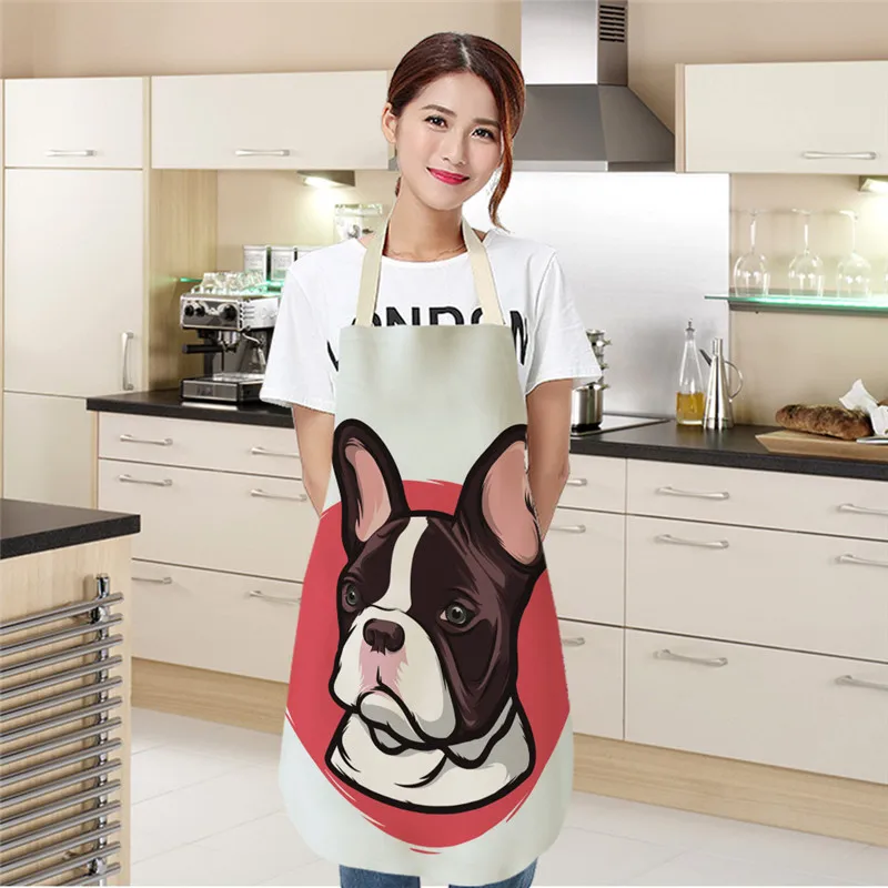 Фартук женский из хлопка и льна с принтом милого мопса, кухонный на...