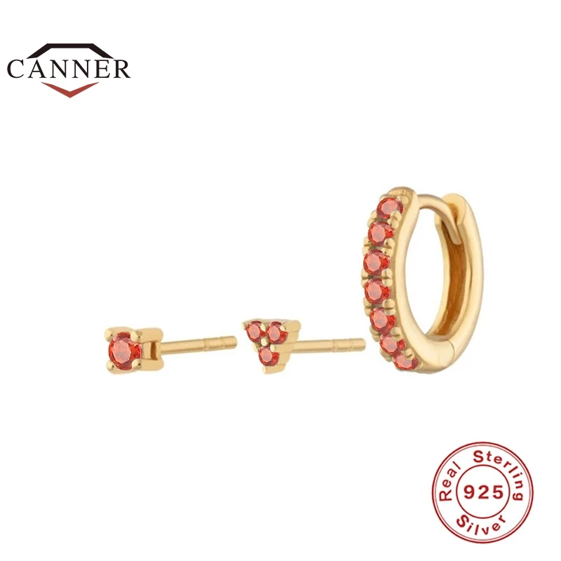 Женские серьги-гвоздики из стерлингового серебра 100% пробы с разноцветным цирконием CANNER, 3 шт.компл., 925 пробы