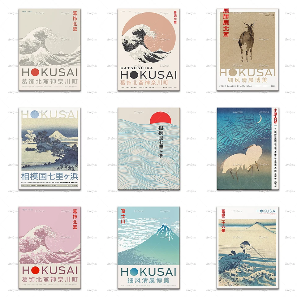 Японские волны, винтажный выставочный плакат Hokusai, современный минимализм, украшение для гостиной комнаты, настенные художественные принты, домашний декор, холст, подарок