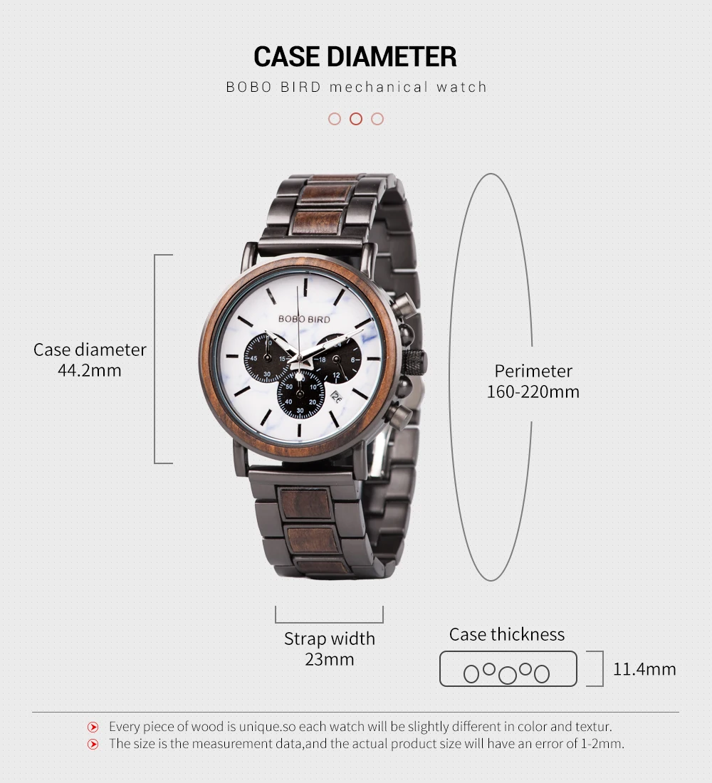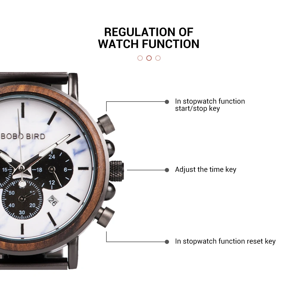Светящаяся функция позволяет легко видеть время в темноте. Не бойтесь темноты, у нас есть bobobird вокруг вас, будьте уверены каждый день