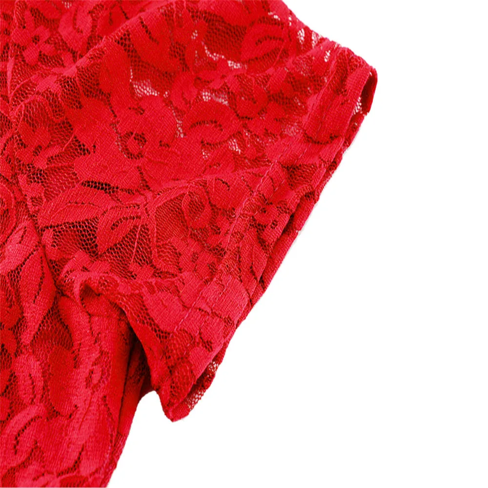 Темпераментная Мода с круглым вырезом Кружевное платье с короткими рукавами