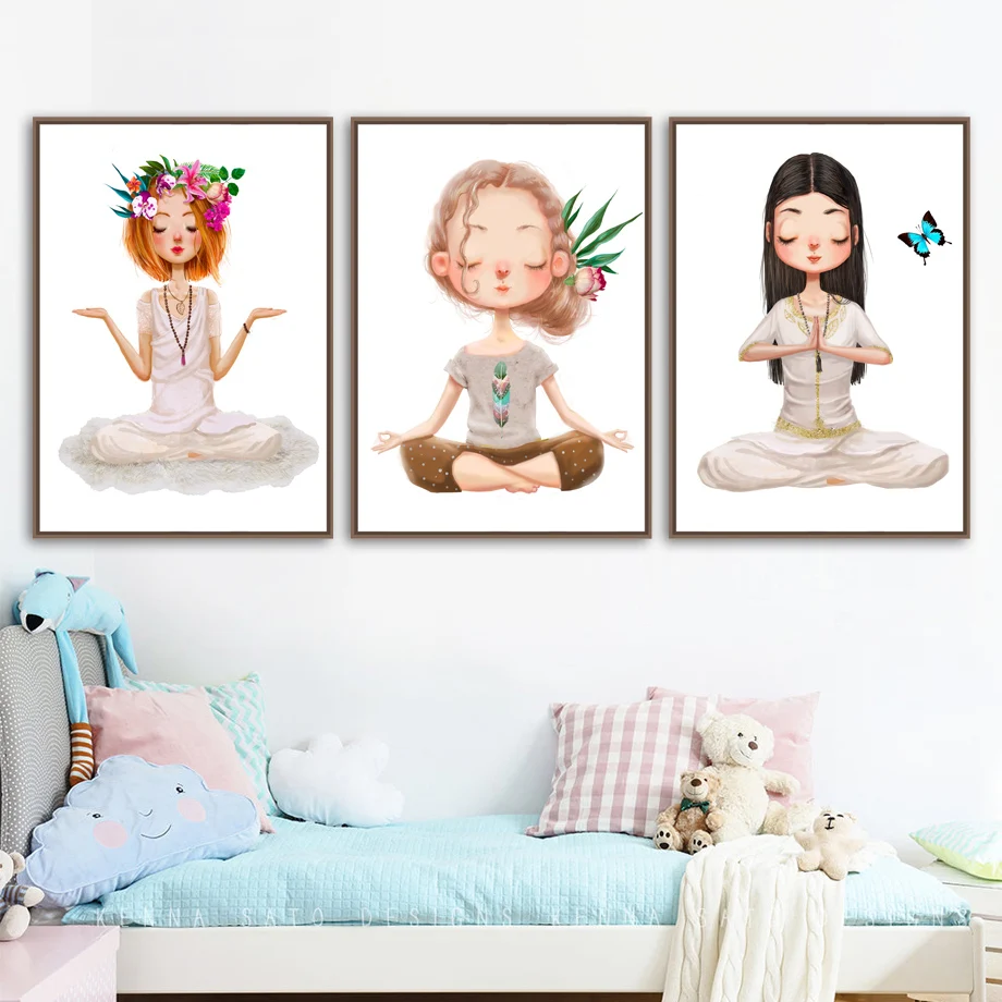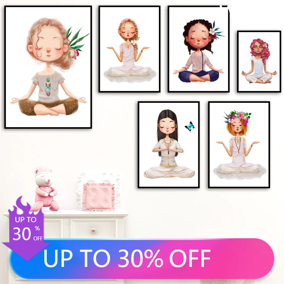 Картина на холсте с изображением милой девушки йоги лотоса, плакаты и принты в скандинавском стиле, декор для детской комнаты, настенные картины для детской комнаты