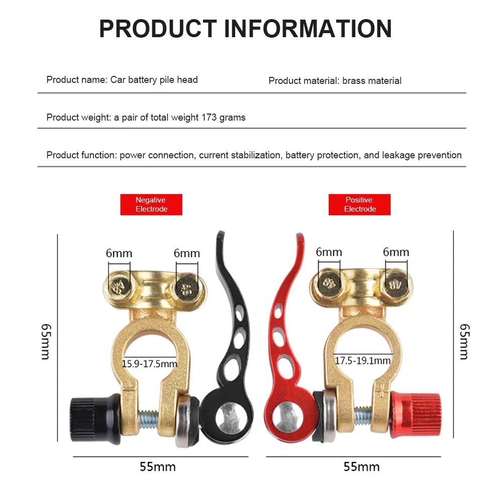 1 пара быстроразъемных автомобильных аккумуляторных клемм, латунные...