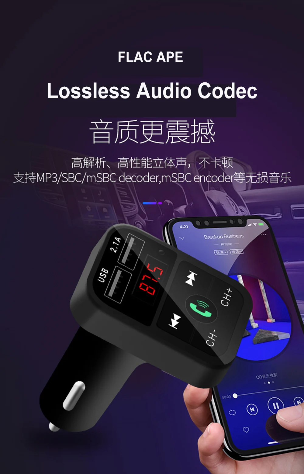 Автомобильный беспроводной Bluetooth-комплект KDsafe, FM-трансмиттер с ЖК-дисплеем, с двумя USB-портами, 2,1 а, с поддержкой MP3, музыки, TF-карт, U-диска, AUX-плеера