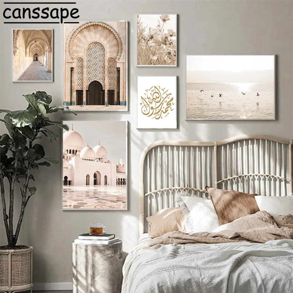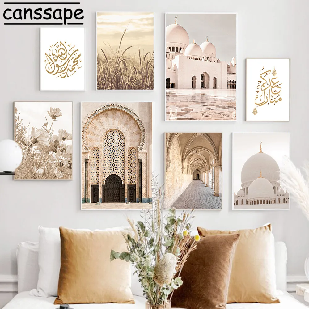 Исламские настенные художественные картины, здание мечети, холст, п...