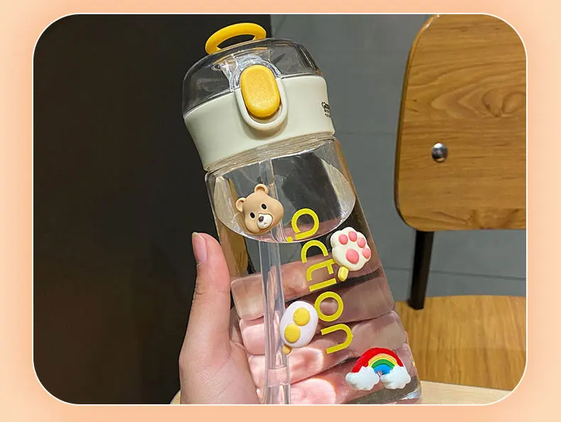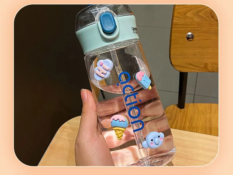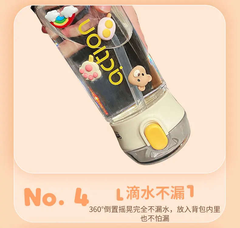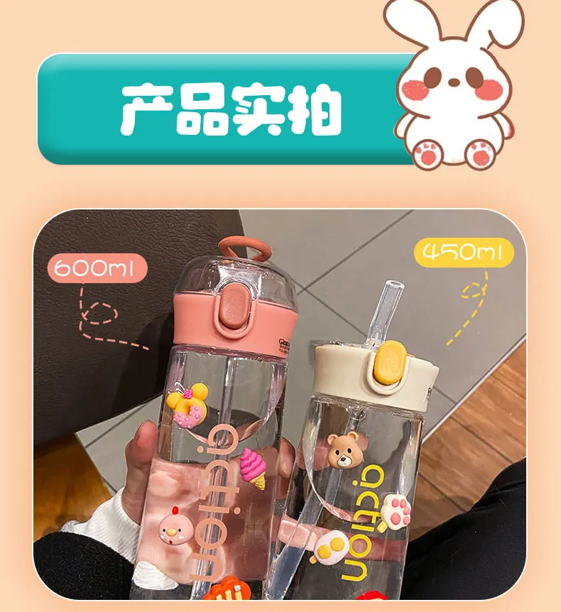 Детская мультяшная пластиковая чашка большой емкости для студентов простая уличная портативная детская соломинка для воды против падения пищевой контакт мат