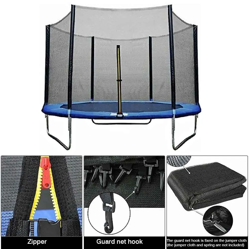 Наименование: защитная сетка для батутаМатериал: Полиэтиленовая сеткаНаправление открытия: Вертикальная молнияВысота:Высота 10 футов составляет 160 см15 футов в высоту 170 см/66.93inКомплектация:Защитная сетка * 1