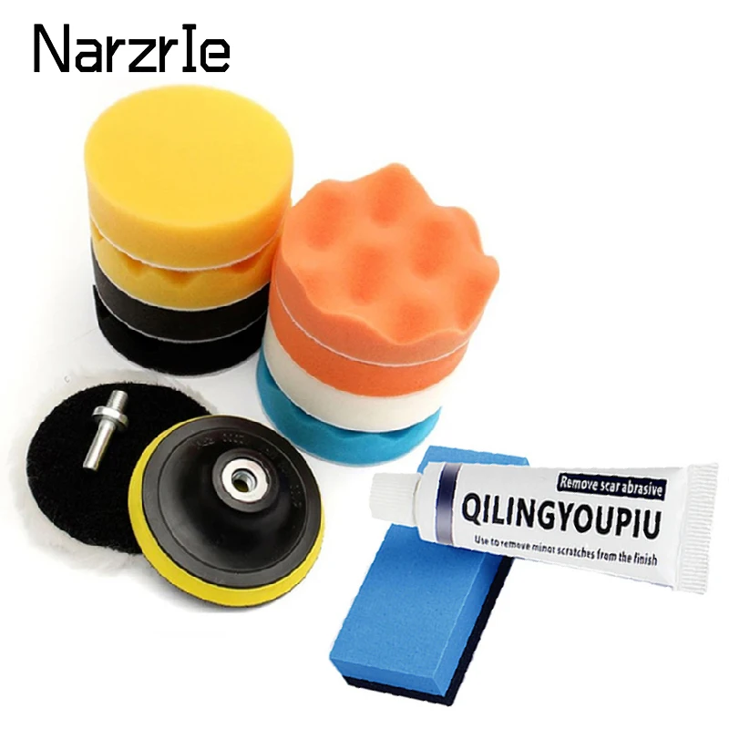 11 шт. 34 дюймов диск автомобильного полировщика + 15 мл автомобиль трассировки удаления воска самоклеющаяся бумага для полировщик Дрель адаптер полировка воском губки